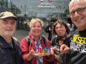 Wir sind mit Ute und Didi mit dem Zug nach Bremen gefahren, um die Stadt zu erkunden. Ich war sehr beeindruckt wie schön es dort ist. Das hatte ich mir so gar nicht vorgestellt… Ute hat eine schöne Pension am Bürgerpark im Stadtteil Schwachhausen für uns gebucht. Highlight war die Kneipe „Schwarzer Hermann“, sehr cool. Bei bestem Wetter haben wir die Stadt und zahlreiche Kneipen erkundet.