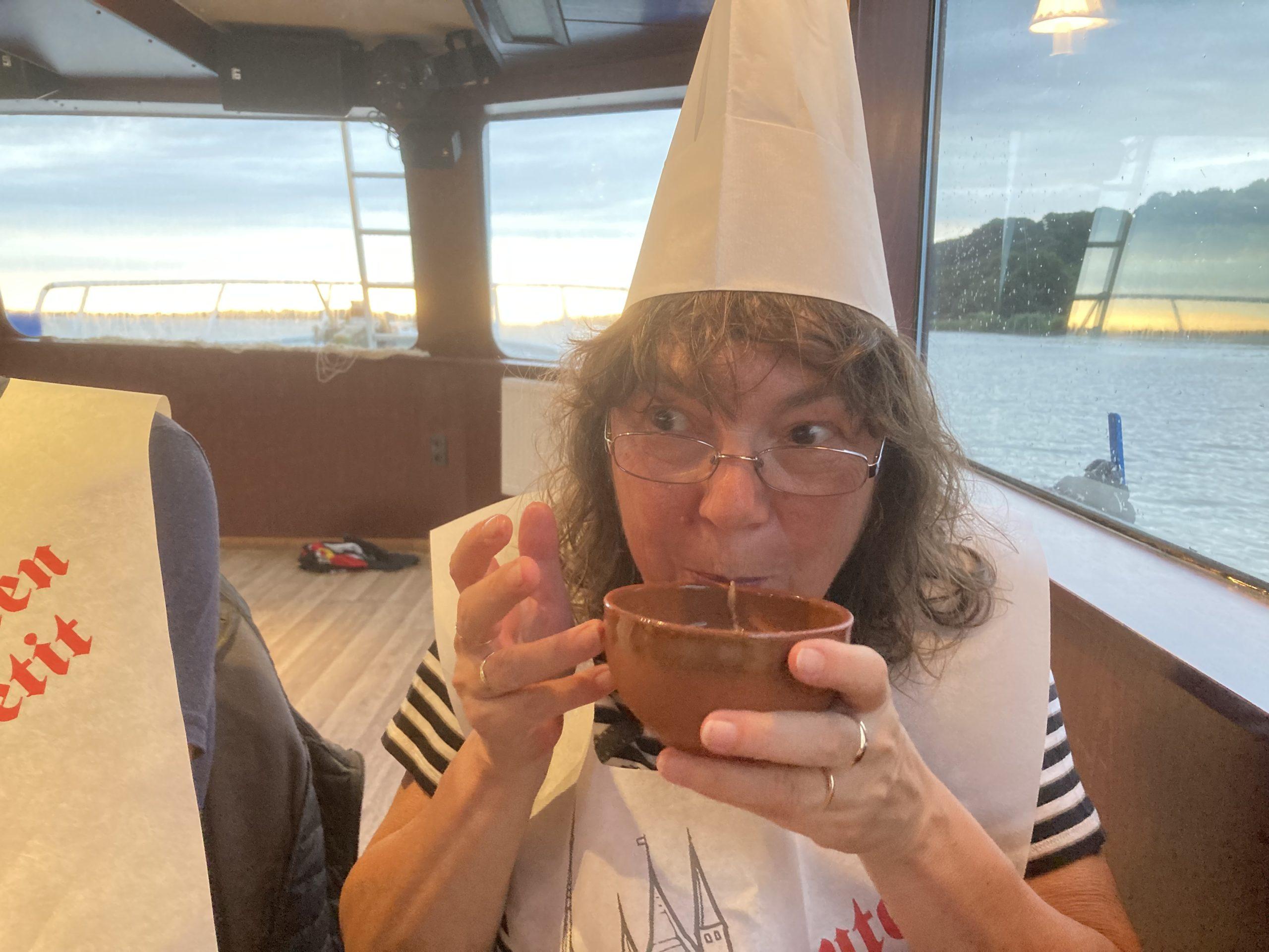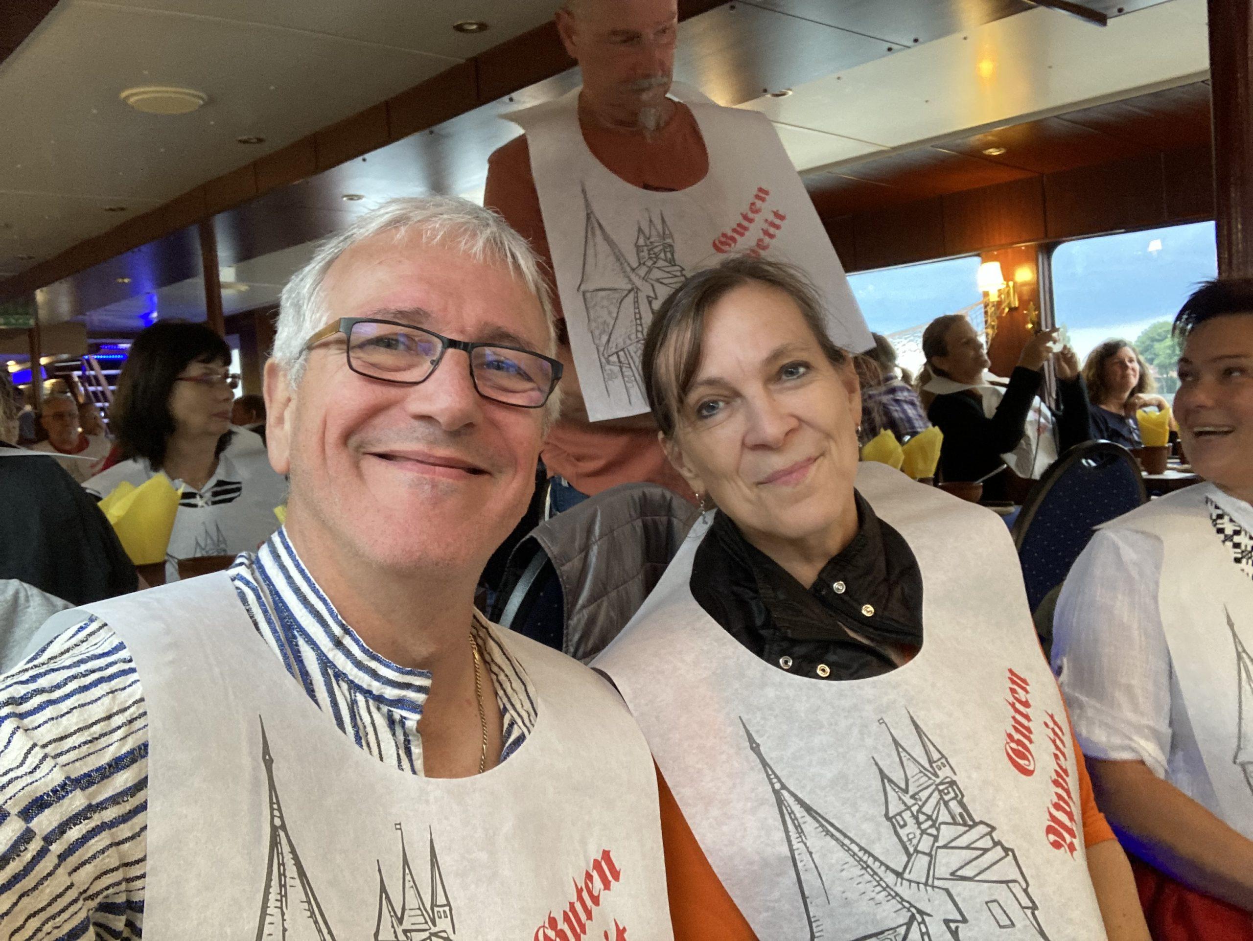 Zu meinem 60. Geburtstag habe ich von meinen Freunden, der geilen Leuchtturm Clique ein tolles Event geschenkt bekommen. Vom Hamburger Hafen ging es knapp 4 Stunden die Elbe rauf und runter, durch die verschiedenen Häfen mit rustikalem Störtebeker Gelage. Reichlich Essen aus Schüsseln ohne Besteck – auch Bier und Wein aus Krügen konnte ohne Grenzen gezecht werden.